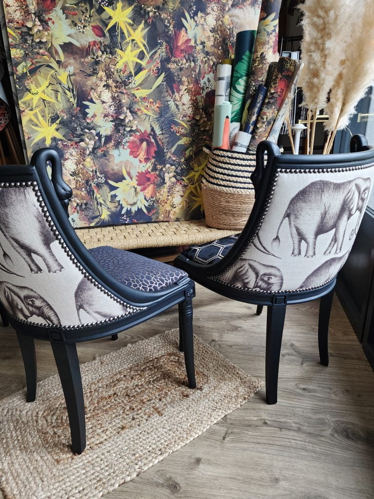 Velours malawi de chez Kobe , clous plomb en finition , noir mat profond pour la boiserie