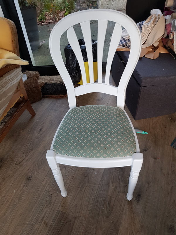 Avant     Chaises de salle à manger à retapisser   Après     Retapissées et assises refaites    galettes de chaises em mousse    Velours rhapsody [...]