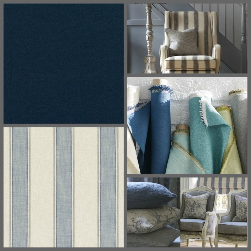 Avant   Beegère et footstool à retapisser entièrement   Après   Fauteuil et repose pied passés au sablage     Tissu kinburn Clarke&Clarke et montrose Villanova [...]
