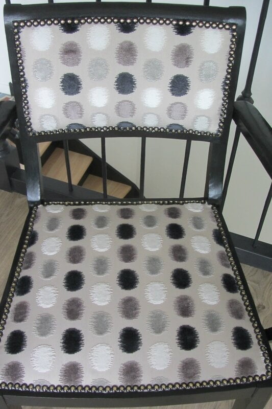 Avant   Bridge à retapisser   Après      Totalement dégarni , laqué en noir et retapissé   Tissu butterfly parade opalin de chez Lacroix     [...]