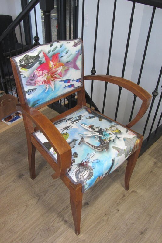 Avant   Fauteuil bridge à retapisser , garniture et tissu   Après   Retapissé   Double passepoil Houlès   Tissu ? Christian Lacroix bien sûr , la [...]