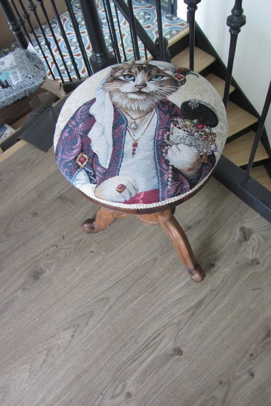 Avant   Voltaire à retapisser Dossier à changer   Après     Magnifique tissu Christian Lacroix   Double passepoil noir   Très lumineux          [...]
