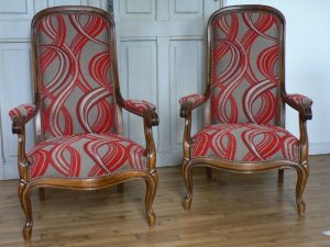 Paire de voltaires retapissés avec un tissu de chez Casal