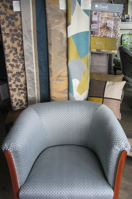 Avant   Quatre chaises de style art déco à retapisser   Après     Retapissées entièrement avec un lin blanc   Le metro de chez Kirkby [...]