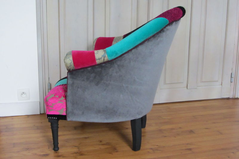 Avant   Fauteuil crapaud à retapisser   Après   Retapissé   Velours cosmos théatre Lelièvre   Passepoil PIDF   Magnifique velours    *