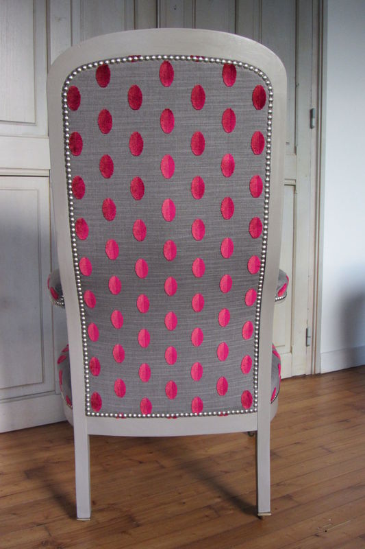Avant Paire de bridges à retapisser totalement , assise et dossier   Après Un des bridges recouvert du velours fuschia Boston2 de chez Casamance   Pour le gris [...]