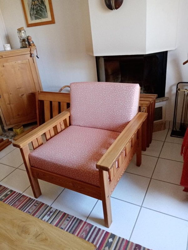 Avant Bridges et chaises à retapisser Après Retapissés avec le outdoor farniente de chez Lelievre Boiseries réparées Finition passepoilée